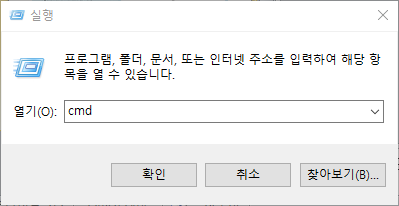 위도우 + R 입력 → cmd 입력 후 확인클릭