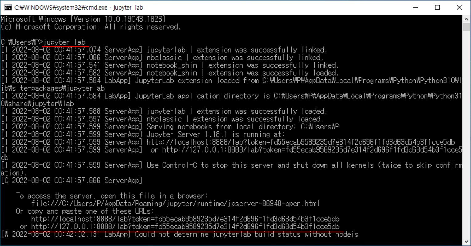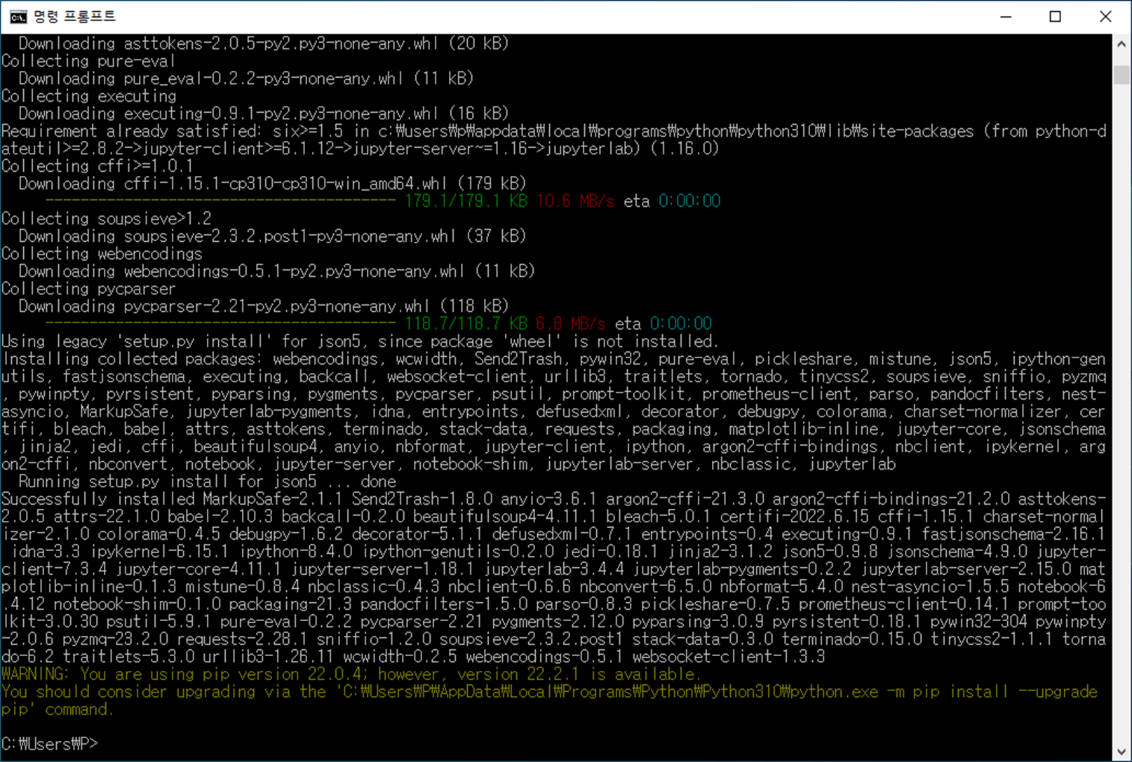 명령어 창에 pip install jupyterlab → enter