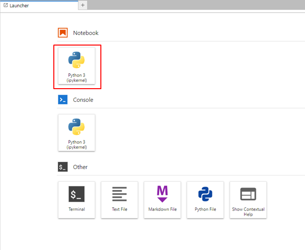 jupyter lab을 실행하면 Launcher 화면이 보입니다.